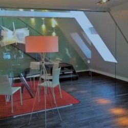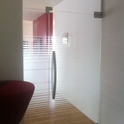 Verbundsicherheitsglas (VSG) aus zwei Scheiben Einscheibensicherheitsglas (ESG) mit matter Folie