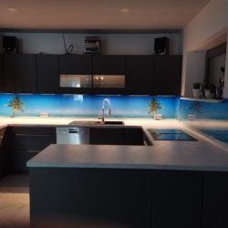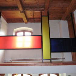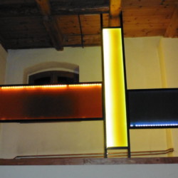 Verbundsicherheitsglas mit Farbfolien in kundenseitiger Rahmenkonstruktion
