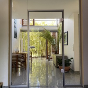 Öffnung durch Schiebetüren vom Treppenpodest aus