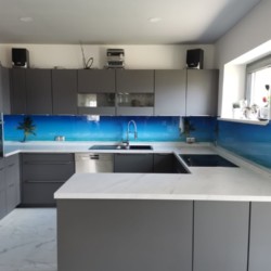 Einscheibensicherheitsglas (ESG) Master-Carré mit Edelstahlklemmen